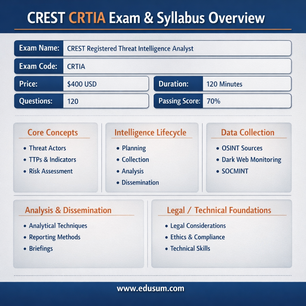 Exam Name: CREST Registered Threat Intelligence Analyst (CRTIA)