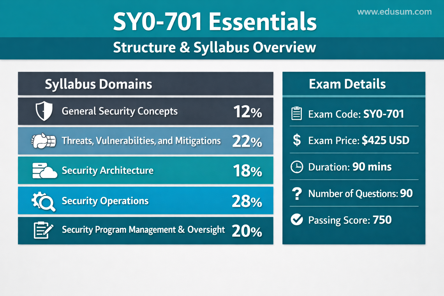 The CompTIA Security+ SY0-701 exam details are structured as follows: